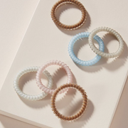 A variety of 8 damage-free hair ties. Approximately 2.5in diameter. Perfect for wrapping three times!